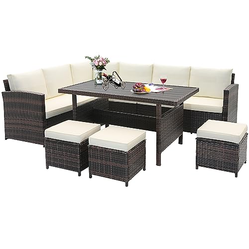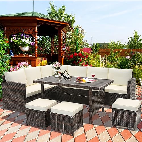 Cozy 7-piece Patio Sofa Set: The 7 pcs wicker furniture set will let you indulge in the luxury of ultimate relaxation with the 3 sofas included in the set, which features cushioned seats, allowing you feel exceptional comfort with elastic sponge. Besides, the inclined backrests and armrests will maximize your relaxation experience.