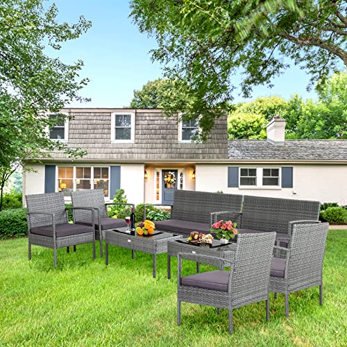 Functional Coffee Table: This patio rattan set also comes with a functional coffee table featuring exquisite glass tabletop which is smooth for easy maintenance. Additionally, the silicone suction cups firmly fix the tabletop in place. And you can easily fetch everything you want from this coffee table.
