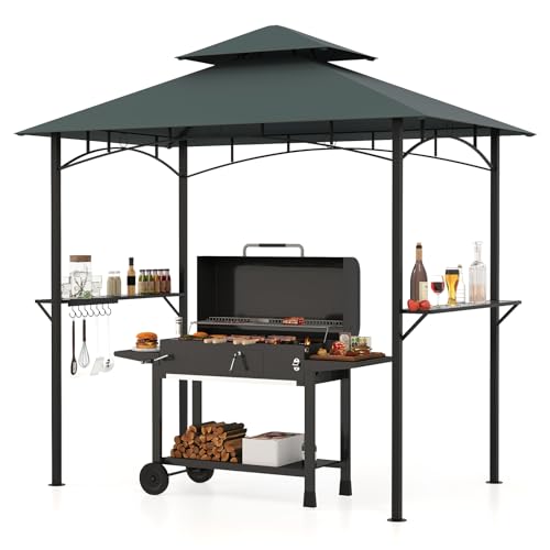 Thoughtful Features: The gazebo is equipped with 2 side shelves for convenient storage of grilling essentials, along with 7 hooks for hanging utensils and accessories. Additionally, it comes with a ceiling hook, perfect for suspending a light, fan, or decoration (not included).