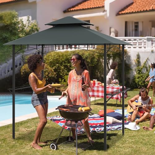 Ideal Grilling Shelter: With dimensions of 8 x 5 x 8.4 ft (L x W x H), this large grill gazebo provides ample shade and protection from sun and light rain. The footprint of the tent is 30.8 sq.ft and the ground clearance is 6.4 ft.