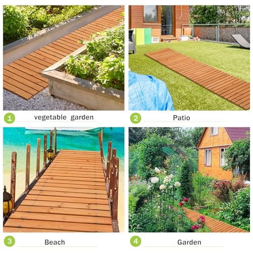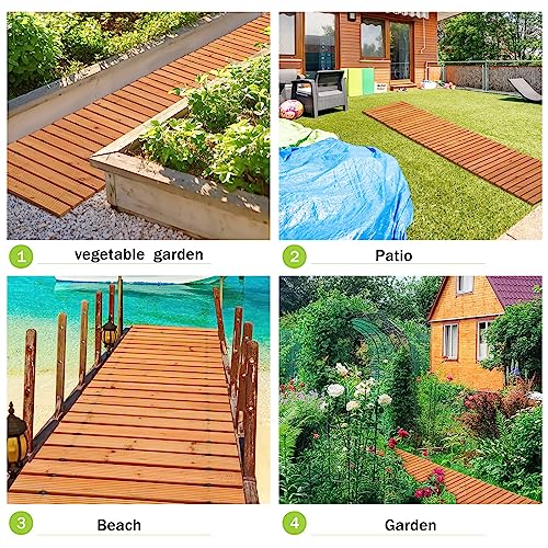 Quality Material: our outdoor walkways are made of pressure treated cedar planks, sturdy and not easy to deform; At the same time, the wooden walkway is not affected by the weather and UV, and can be applied for different seasons; The non slip pattern on the surface greatly improves the safety and stability when walking, and you can use it outdoors with confidence
