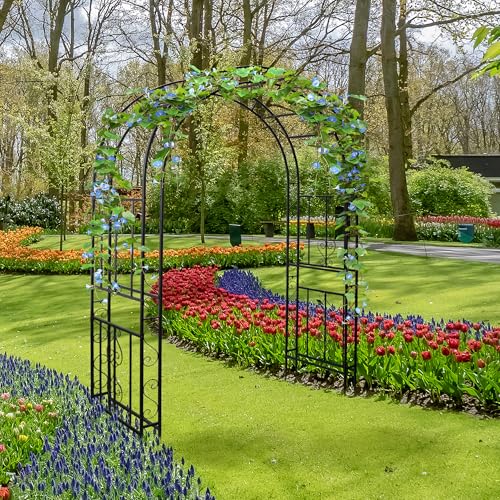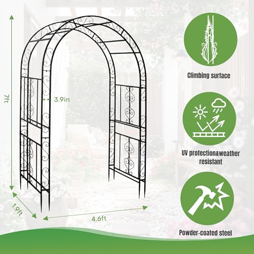 ?????Sturdy Construction?Crafted from robust steel pipes, the outdoor arbors frame exceptional durability and resistance to deformation. To further enhance its longevity, we have applied a black spray-baked finish to the surface, ensuring both longevity and aesthetic appeal for the arch.