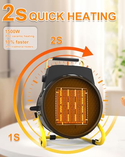 Powerful Garage Heater - The 1500W outdoor heaters uses PTC ceramic heating technology, which can quickly heat up to 200 square feet. 3 seconds of rapid heating immediately reaches the desired temperature, allowing you to immediately feel the fast and gentle heat. Outdoor space heater can also be used in courtyards, garages, planting tents, flower houses, bedrooms, living rooms, etc.