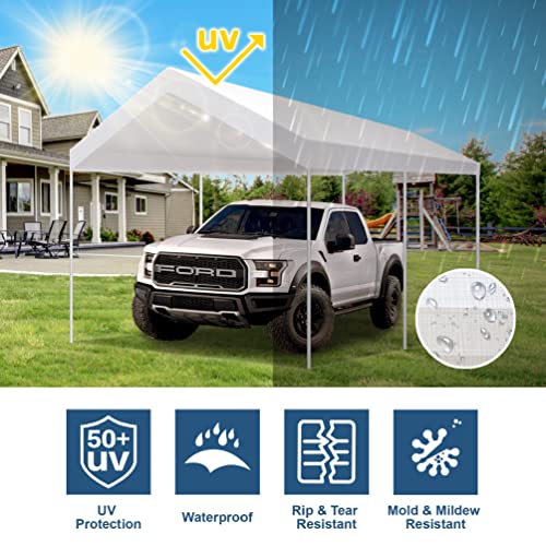 [Waterproof Canopy Cover] This car top replacement roof cover is made of high-quality heat-sealed polyethylene fabric, which is UV-resistant, waterproof, blocking up to 95% of the sun's UV rays, thus protecting the health of you and your family. Also protect your car or vehicle against dust, sun, wind, rain and snow.