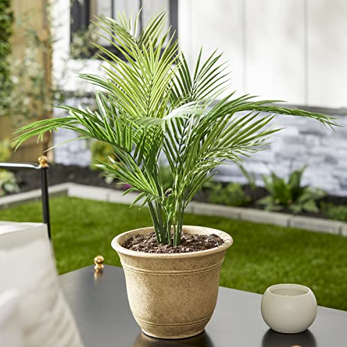 STONEWARE DESIGN: With graceful curves and a time-worn stoneware look, this pot brings timeless elegance to your porch, patio, or deck. These self-watering plant pots will complement the decor in any room.