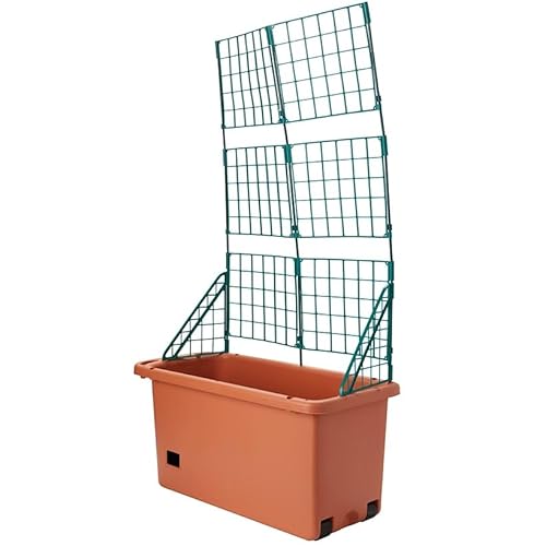 An extra-large 3-gallon water storage zone with a self-watering pot makes growing plants easy. Sectional trellis panels can be added as plants grow and will support plant growth up to 3 feet high.