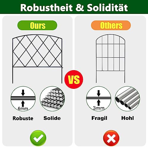 ?Wide range of uses??Create an elegant and functional border around your plants or walkways, or simply add a section for architectural interest around your patio. This small Iron fence can be used as yard landscape edging fence,such as path edging fence, garden border fence, folding fence, tree guard,flowerbed border, vegetable border fencing,etc. Also can be used as small animal pet barrier