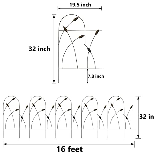 ?Size & Rustproof Material??This metal garden fence measures 16 ft wide x 32 in high,This wrought iron fence is made of high quality metal material and durable powder-coated finish helps prevent rusting and stands the test of time and weather. Iron, rust and corrosion resistant, sturdy and durable for years of outdoor use.