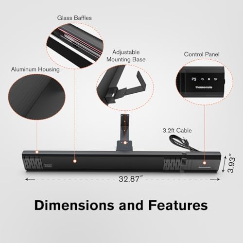 9 Heating Levels & 24 Hours Timer - you can operate the heater on its control panel or using the attached remote. Durable and weather proof aluminum body, adjustable wall mounting base, 3.2ft UL approved cable plug into 120V outlet