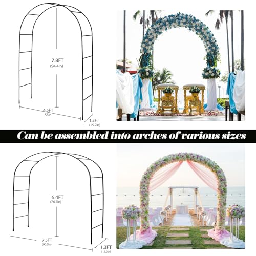 CONVERTIBLE SIZE: Assembled into 4.6*7.8 Ft or 6.4*7.5 Ft; quickly adjust the size of the metal arch by disassembling and splicing the steel pipes according to the actual need
