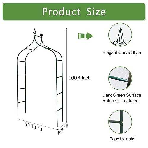 Robust Construction: Crafted from high-quality metal with a durable dark green spray coating, this wedding arch is built to withstand the test of time. The garden arch remains securely grounded when its ends are inserted into the ground, ensuring stability and longevity.