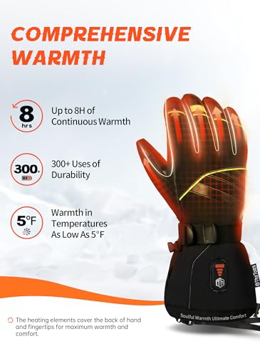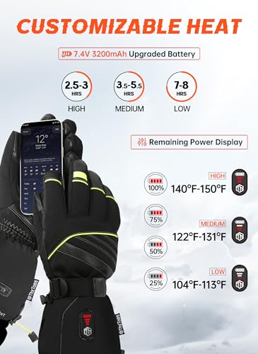 ?????High-Quality Materials and Touchscreen Compatibility?ThxToms heated ski gloves feature 3M Thinsulate filling and a waterproof outer fabric that keep your hands warm and dry even in the coldest conditions.These gloves feature touchscreen compatibility, allowing you to use your smartphone when you are outside. Whether you need to answer a call or take a picture, these gloves make it easy and convenient.