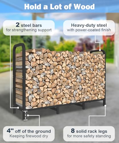 ELEVATED STRUCTURE WOOD RACK: The elevated structure of the firewood holder keeps your firewood off the ground, keep away from humid and pests. This design also promotes proper airflow, allowing your firewood to dry effectively and ensure optimal burning conditions.