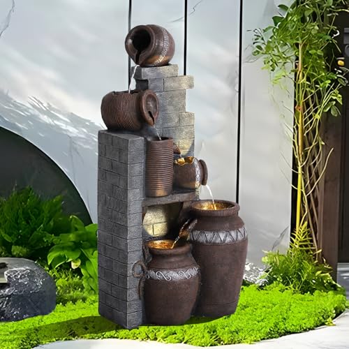 Individually Controlled Lights: Featuring warm LED lights that can be individually controlled, this outdoor water fountain is the perfect addition to your porch, backyard, garden, or lawn, adding an inviting ambiance to any outdoor space.