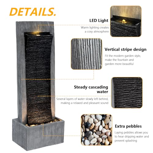 Safety Waterfall: Rest assured with the UL certification of this outdoor water fountain. Designed with a US plug for 110V-120V 60Hz voltage input, it ensures safe and reliable operation. The cascading water sound adds a tranquil touch to your surroundings