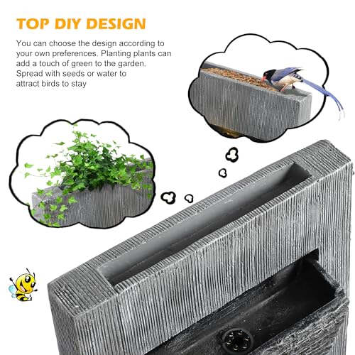 Durable Resin Material: Crafted from durable resin material, the outdoor fountain has a natural stone appearance that is weather-proof, rust-proof, making your garden fountain look like natural stone outdoors. The top of the rockery has a groove for placing potted plants, which can DIY the beautiful scenery of mountains and rivers