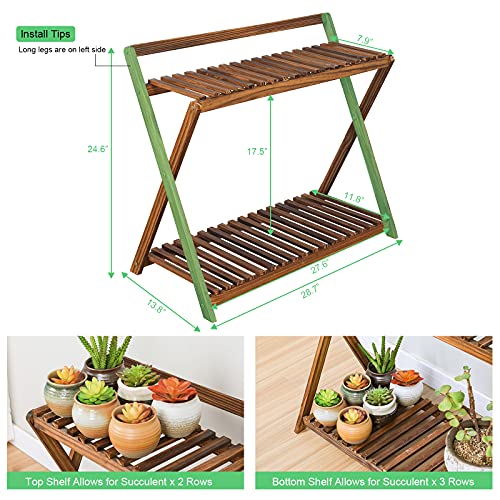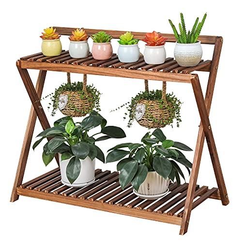 Tovacu Wood Plant Stand Indoor Outdoor 2 Tiers Flower Stand Corner Stepped Planter Shelf Rack Flowerpot Holder for Plant Display in Patio Balcony Entryway Porch Livingroom (Classic X-Cross Design)