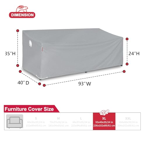 ?Dimension and Premium Material?- measures: 93"(W) x 40"(D) x 35"(H). Heavy-duty Oxford with new upgrade PVC coating. Fits the different styles and brands benche, loveseat or 4-6 seaters sofa of your outdoor garden, yard or patio. Please confirm the measurement of your furniture before purchasing.