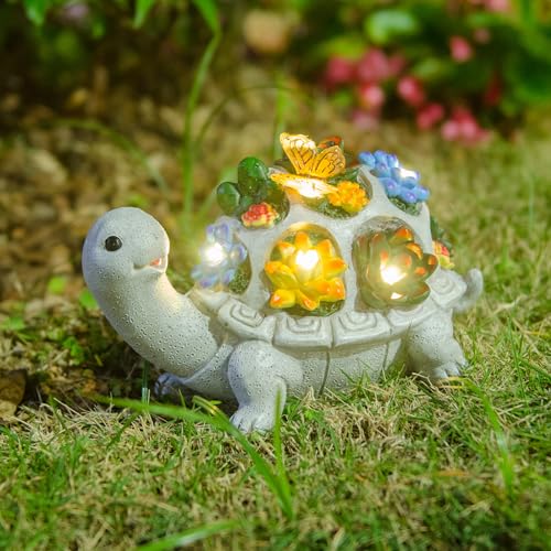 ??????Great Gift Choice?SolarTurtle Statue is an excellent gift choice for anyone of any age. The unique design and the solar lantern make it a popular gift for Mom/grandma, a great Christmas/Mother's Day gift/Father’s Day, those who like gardening too, will love this cute turtle staute with butterfly decor.