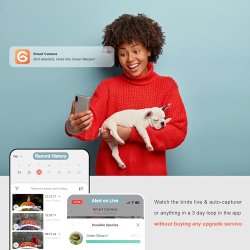 ????AI Bird Camera: Enjoy stunningly clear views of your avian companions with the 1920x1080p 2MB pixel smart bird feeder camera. The advanced AI can identify over 10,000 bird species, and the instant motion detection feature will promptly alert your phone whenever it recognizes your bird friend. It even provides the bird's species right away, and you can access additional information by simply clicking on a pop-up window, which conveniently leads you to more details about your winged guest.