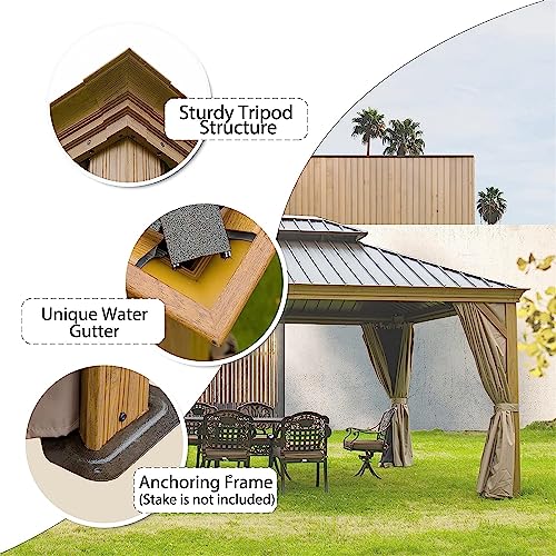 Spacious Design: The gazebo measures 14' L x 12' W x 10.08' H, providing ample space for outdoor gatherings, barbecues, or relaxation.