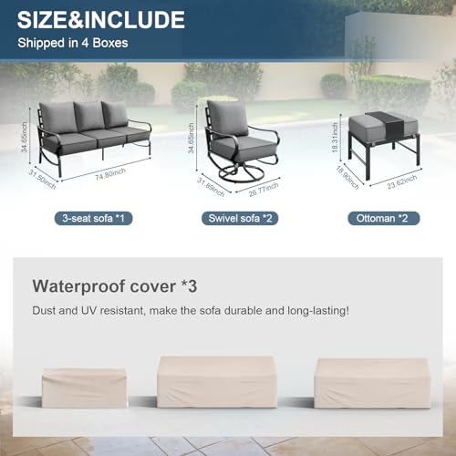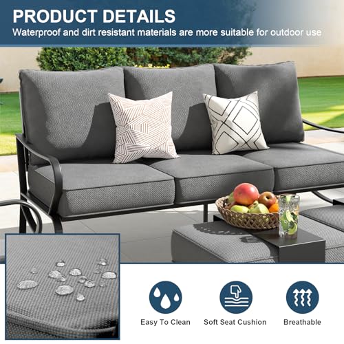 ?OVERSIZE SEAT?The depth of patio furniture set seat is 25 inches, makes the user more comfortable. And the high-density sponge in the seat cushion is soft and easy to rebound.The sofa weight capacity up to 900lbs(3 seat sofa) and 350lbs(single sofa chairs)? providing a certain level of support, gently lifting your body to reduce fatigue.