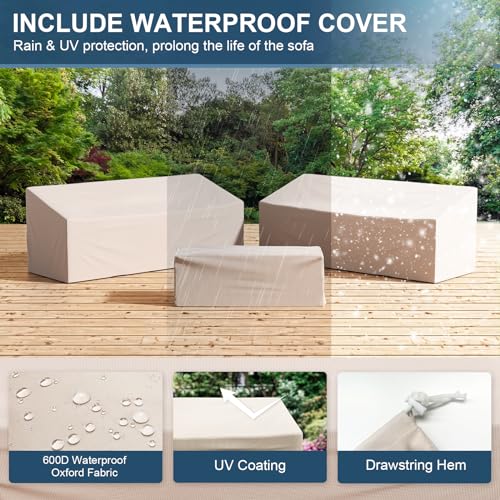 ?WITH WATERPROOF COVER?UDPATIO Metal patio furniture waterproof cover equipped with 600D oxford fabric added UV-stabilized coating.Tightening the drawstring can reduce damage from UV rays and rain and snow,can extend the product's service life.