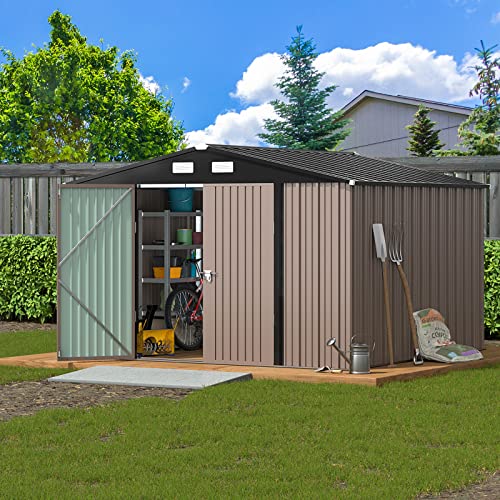 ?????Spacious 10'x10' Storage Sheds? (124"L x 120"W x 80.71"H). This garden shed is perfect for storing snow blower, lawn mower, outdoor chair, large umbrella, fire pit, bikes, skateboards, trash can, kids' toys, generator and other items.