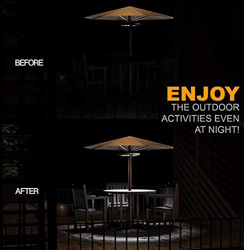 COMPATIBLE WITH MOST BACKYARD UMBRELLA: Every home has its own unique and modern accent, especially in your hangout area, like porch, patio, garden, pool, or backyard. That's why we created light accessories for different kinds of umbrellas, either you have Tilting, Cantilever or off-set umbrella, Palapa Tiki-Style umbrella, Commercial patio umbrella. Be sure you have a pole diameter of 21.85-44.5mm.
