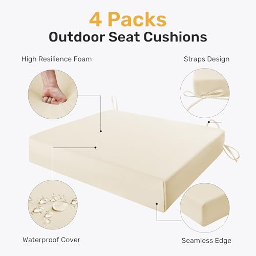 CHAIR CUSHIONS SET OF 4: With 4 cushions included in each pack, cushions measure 18.5"x16"x3". You'll receive cushions in tightly bag. The cushions will be wrinkled and deflated after unpacking, In order to ensure that the cushion can rebound perfectly, it is best to wait 48 hours before it can be restored to its original state.