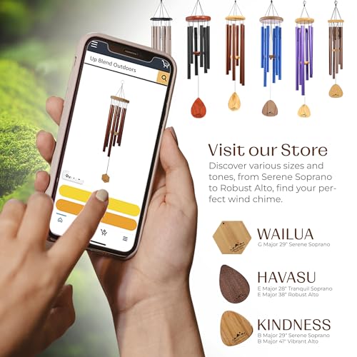 Experience something special with our outdoor wind chimes deep tone. Havasu chimes reign as the sound royalty, hand-tuned to E-Major in two sizes with 6 colors. The 28" is a gentle soprano, while the 38" produces a deeper, richer alto sound.