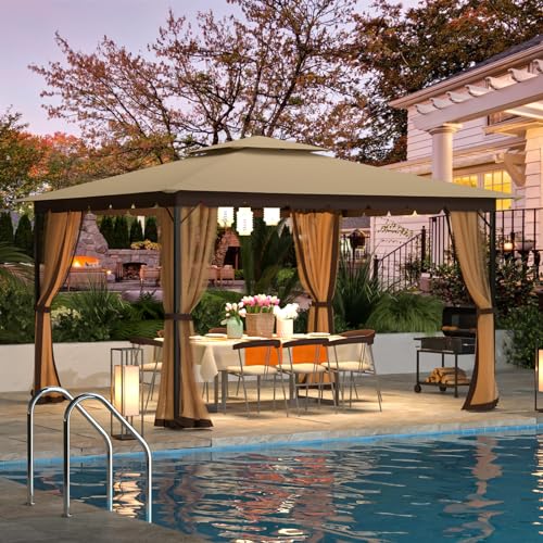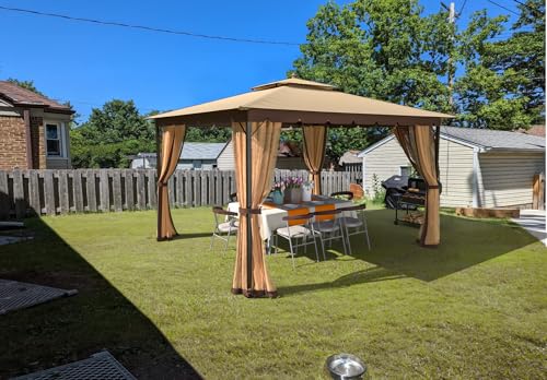 ?CUSTOMIZED COMFORT?: This 10x12 outdoor patio gazebo features mosquito nettings with zippers. you'll be protected from annoying insects and bird droppings while enjoying fresh air. At the same time, these mesh side walls provide ample airflow, touch fasters and snaps secure the side walls so you can help or lower the mesh shade as needed.