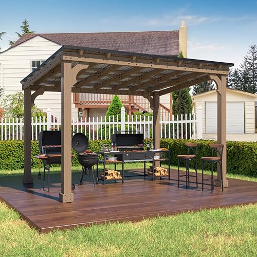 Sturdy Wood Construction - Our 10x12ft grill gazebo is made of 100% natural cedar wood, which is more stable, sturdier and not easy to rust. In addition, extra water-based stain is highly recommended for better protection, which can extend its service life. The patio gazebo is an ideal choice for have a barbecue or gathering in your garden, backyard etc