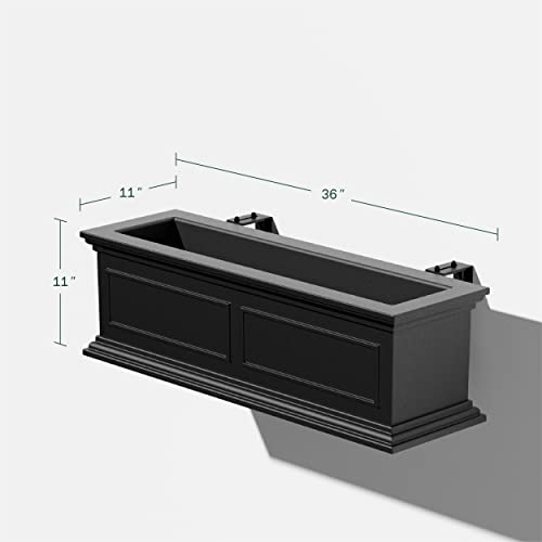 DIMENSIONS & DETAILS: This railing planter’s exterior dimensions measure 11” in Height, 11” in Width, 36” in Length, and the interior dimensions measure 7.5” in Height, 6.75” in Width, 31.75” in Length