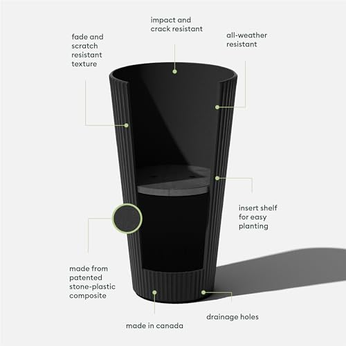 DURABLE MATERIAL: Made from a patented plastic-stone composite, this fluted planter has a subtle textured finish and is all-weather resistant to cracks, scratches, UV and fading; perfect for hot or cold climates ranging from -20 to +120 degrees