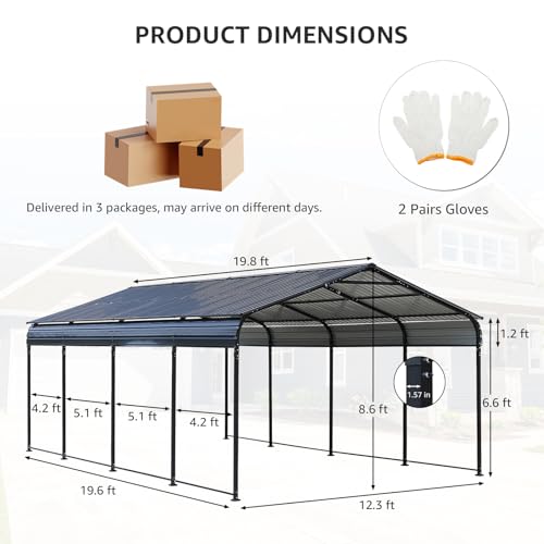 Easy to Assemble: The overall size of portable garage: 237.2"L x 147.8"W x 103.1"H. The package includes all necessary hardware and detailed assembly instructions, and all parts are coded, we also provide two pairs of gloves and installation tools to make your installation process easier and more efficient.