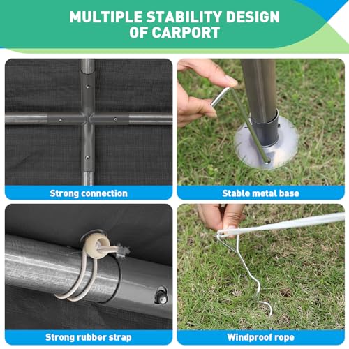 [MULTIFUNCTIONAL OUTDOOR SOLUTION FOR EVERY OCCASION] More than just a vehicle shelter, our spacious carport canopy serves a multitude of functions, making it an excellent addition to any outdoor space. Ideal for outdoor events like parties, weddings, or commercial fairs, it provides versatile protection and shelter for a range of activities. Suitable for cars, trucks, boats, and more, this adaptable outdoor tent is the practical solution you need for diverse occasions, enhancing your outdoor ex