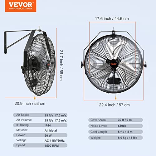 Power without Noise: ETL listed. 1500 RPM, 90 W copper motor with all metal casing contributes to a farther air movement range at lower noise. Our wall mounted fan comes with 6 ft power cord for your maximum convenience. Keep flies away during relaxing summer days!