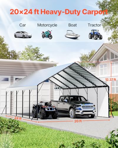 Heavy Duty Carport for Versatile Use: This 20x24 ft heavy-duty carport offers ample space for cars, RVs, or boats. Also ideal as a portable garage or car shelter for patio furniture, tools, or a workbench. A great choice for backyard gardens, rv carport, ranches, or farms.
