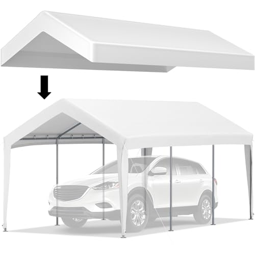 2. ????????????????**Durable Canopy Fabric for All Seasons**: Our all-season carport cover features 180g three-layer PE fabric that's designed to endure harsh outdoor conditions. From rain to sun, it offers water resistance, UV protection, fade resistance, and tear resistance. The canopy cover securely attaches to the frame using elastic balls, ensuring long-lasting durability for your carport.