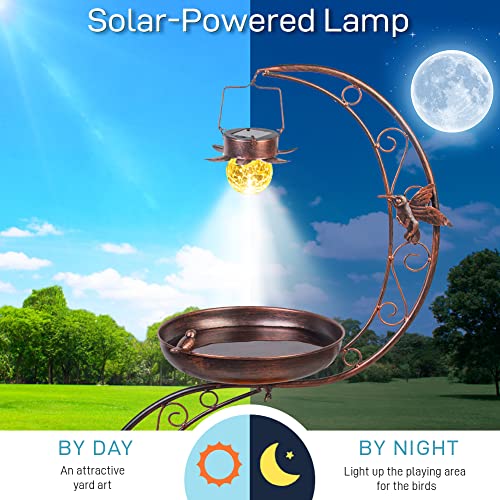 Solar-Powered Lamp: Our metal bird bath has a solar chandelier at the top that charges itself during the day and lights up at night. Compared with ordinary bird baths, our birdbath can also protect our bird friends well at night, and can also light up the yard and add different scenery