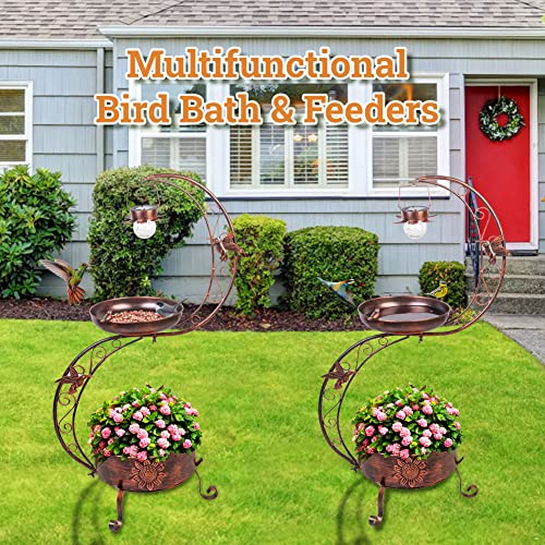 Bird Baths for Outdoors: Our garden bird bath is 36" H * 19.6"W. Birdbath is a unique S-shape and a bird bath bowl in the middle. The connection part is like a vine, and there are two hummingbird sculptures decorated. Vintage bird baths will attract more bird friends to your garden