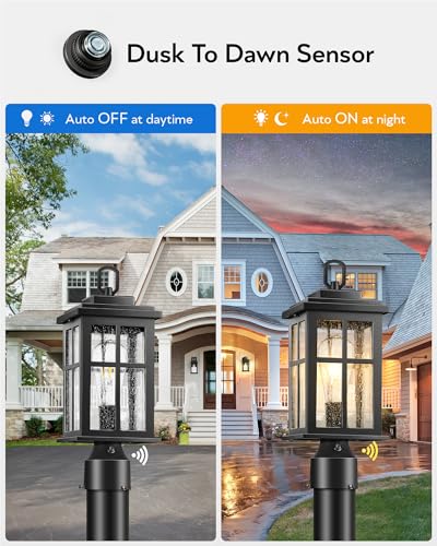 Most Advanced Dusk To Dawn Sensor?VIANIS outdoor post light fixtures dusk to dawn built-in high sensitivity photocell sensor. Outside lamp post will turn off automatically in the daytime when the ambient brightness is more than 100lux, Auto turn on at night when brightness is less than 20lux. Free your hands, save your bills on electricity, making your life more convenient.