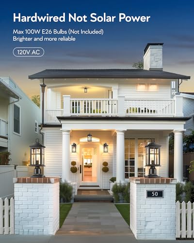 Two Mounting Ways & E26 Base?Outdoor lamp post light fixture include pier mount base, the patio post lights can be mounted on flat surfaces such as pillars or column. In addition, this outdoor post lights hard wired can be used on the top of a 3-inch outer diameter light pole. You can choose two ways to install according to your preferences. Our outdoor lamp post light fits all types of E26 base of the bulb, the max wattage 100w. (Bulb Not Included).