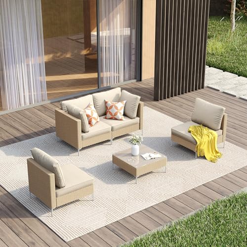 ?5 Pieces Outer Modular Seating?VICLLAX outdoor sofa set includes 2 corner chairs, 2 armless chairs, and 1 glass-top coffee table. Sectional set makes rearranging for any outdoor setting, activity, or occasion easy
