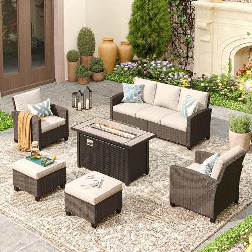 ?Spacious Seating Space?The VICLLAX conversation set includes 3-seat sofa, fire pit, single sofa chair and ottoman, catering to your family gatherings. High backrest is designed to offer exceptional support and comfort for your back. Stylish and modern shape that complements your backyard, poolside or garden.