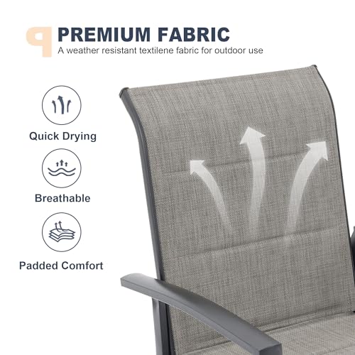 ?360-Degree Swivel Chair?This outdoor dining chairs support 360-degree rotation and gentle rocking for easy turn around on your seat, bringing you comfortable dining leisure time as any posture. Besides, The reinforced fixed base provides a sturdy foundation, ensuring a secure and reliable seating experience. Cotton-padded back offers extra comfort for your outdoor life.