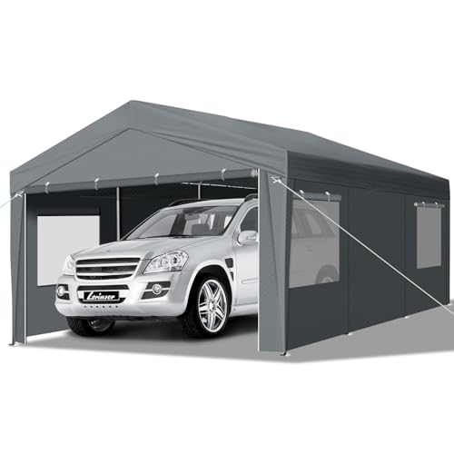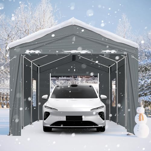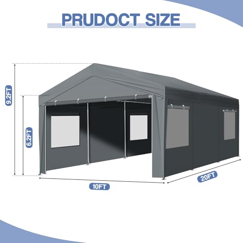 Spacious Heavy-Duty Carport: The 10x20 car port provides ample space for your vehicles, boats, cargo, etc. Removable sidewalls and doors can meet your various needs. The carport canopy shelter is perfect for parties, commercial exhibitions, outdoor events, weddings, storage shelters, and so on