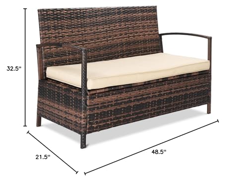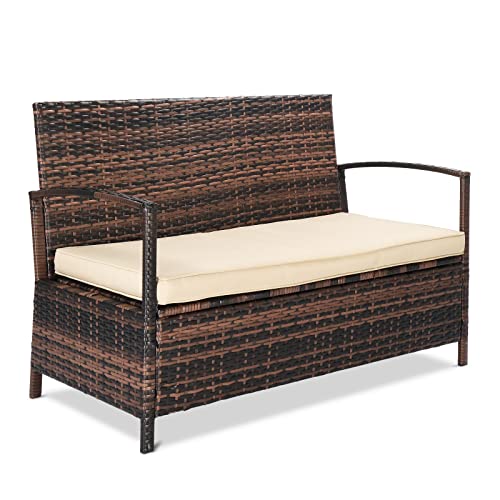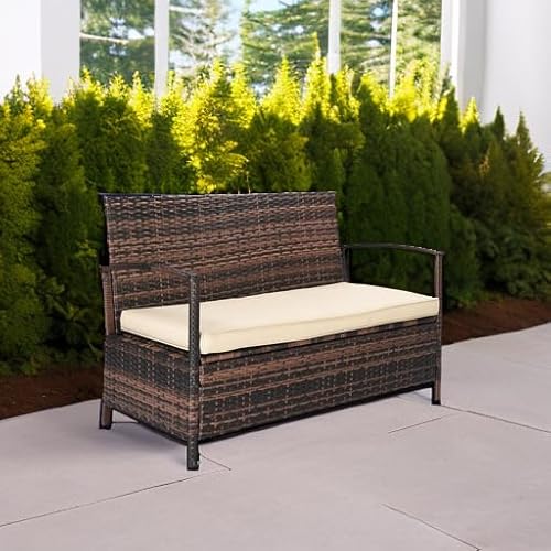 Multi-Scenario Application - Designed with beautiful wicker and unique outlook allow the outdoor patio bench with storage to adapt to various scenes, such as Patio, Garden, Yard, Balcony and more