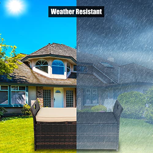 Versatile Outdoor Furniture - Ideal for various outdoor settings including gardens, patios, poolside areas, and porches. Its stylish woven design complements any outdoor decor while providing practical storage and seating solutions